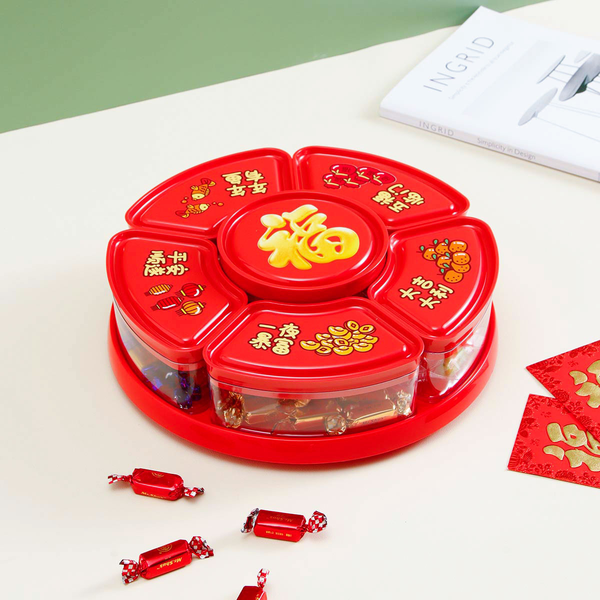 財神聚福旋轉糖果盒