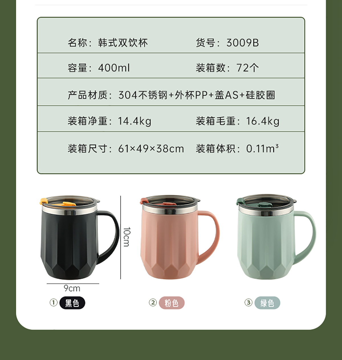 Stuff:304不銹鋼+外杯PP+蓋AS+硅膠圈/彩盒