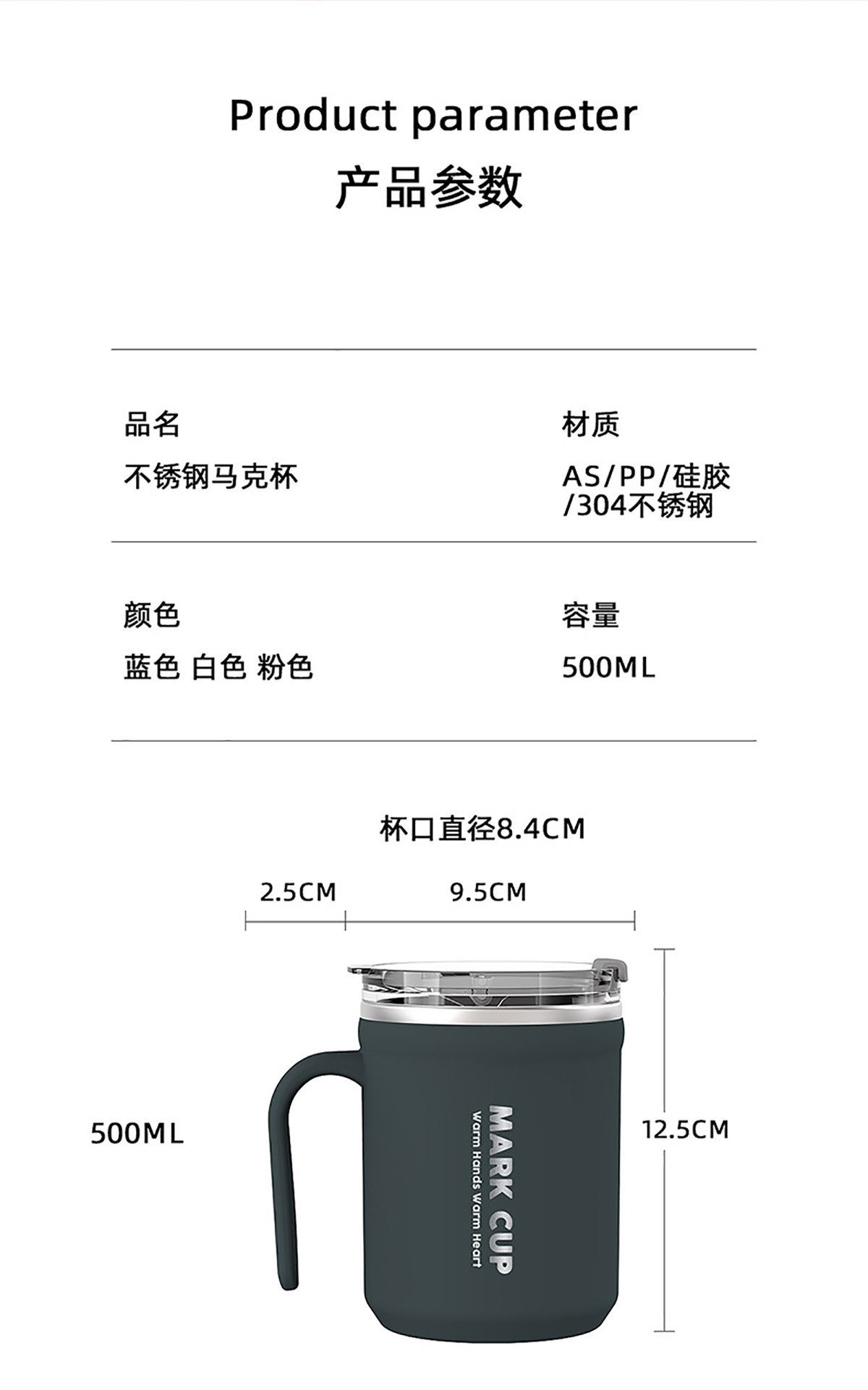 Size: φ84*125mm(連手柄寬長(zhǎng)2.5mm)/500ml