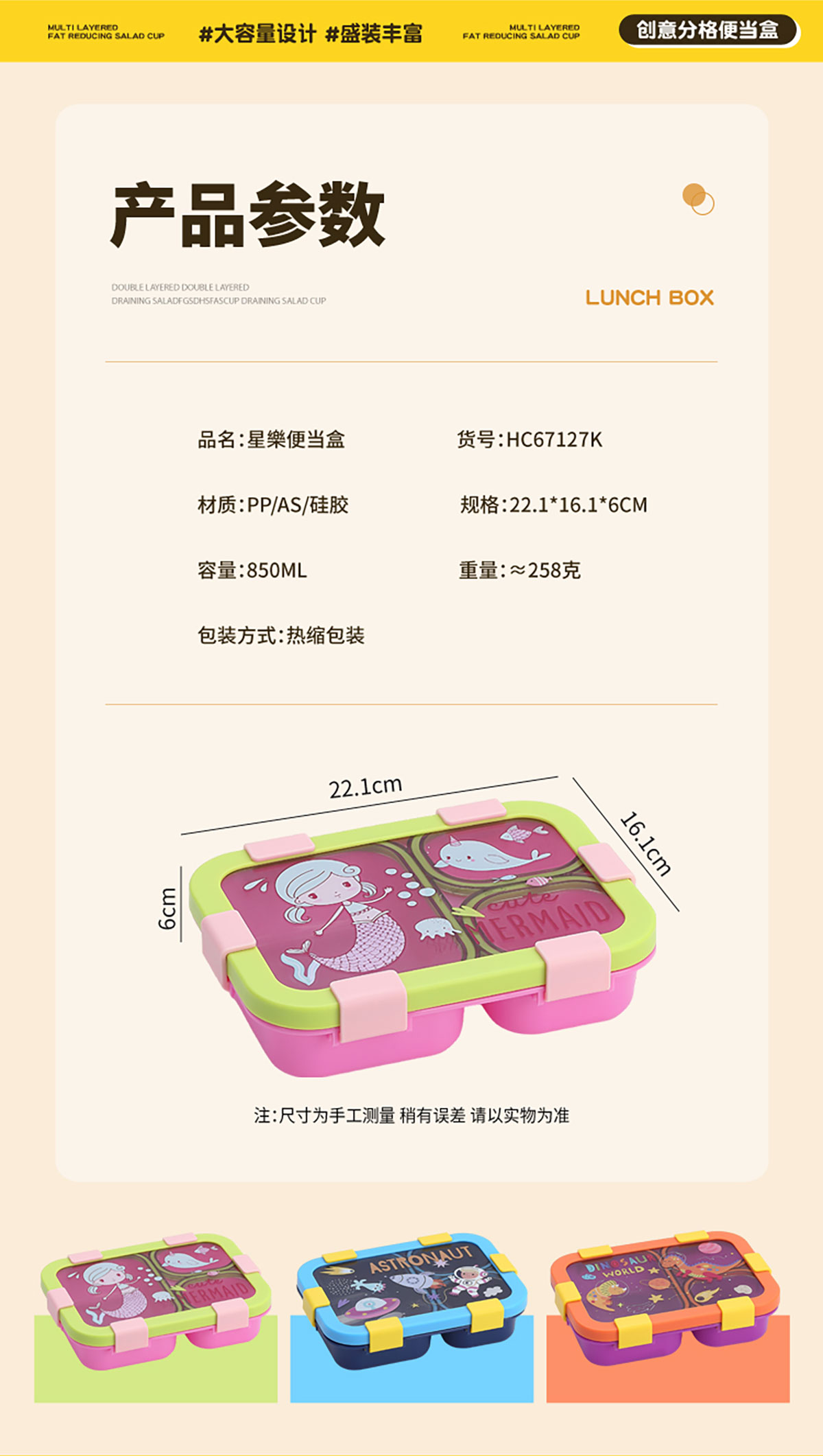 Size: 221*161*58mm/850ml