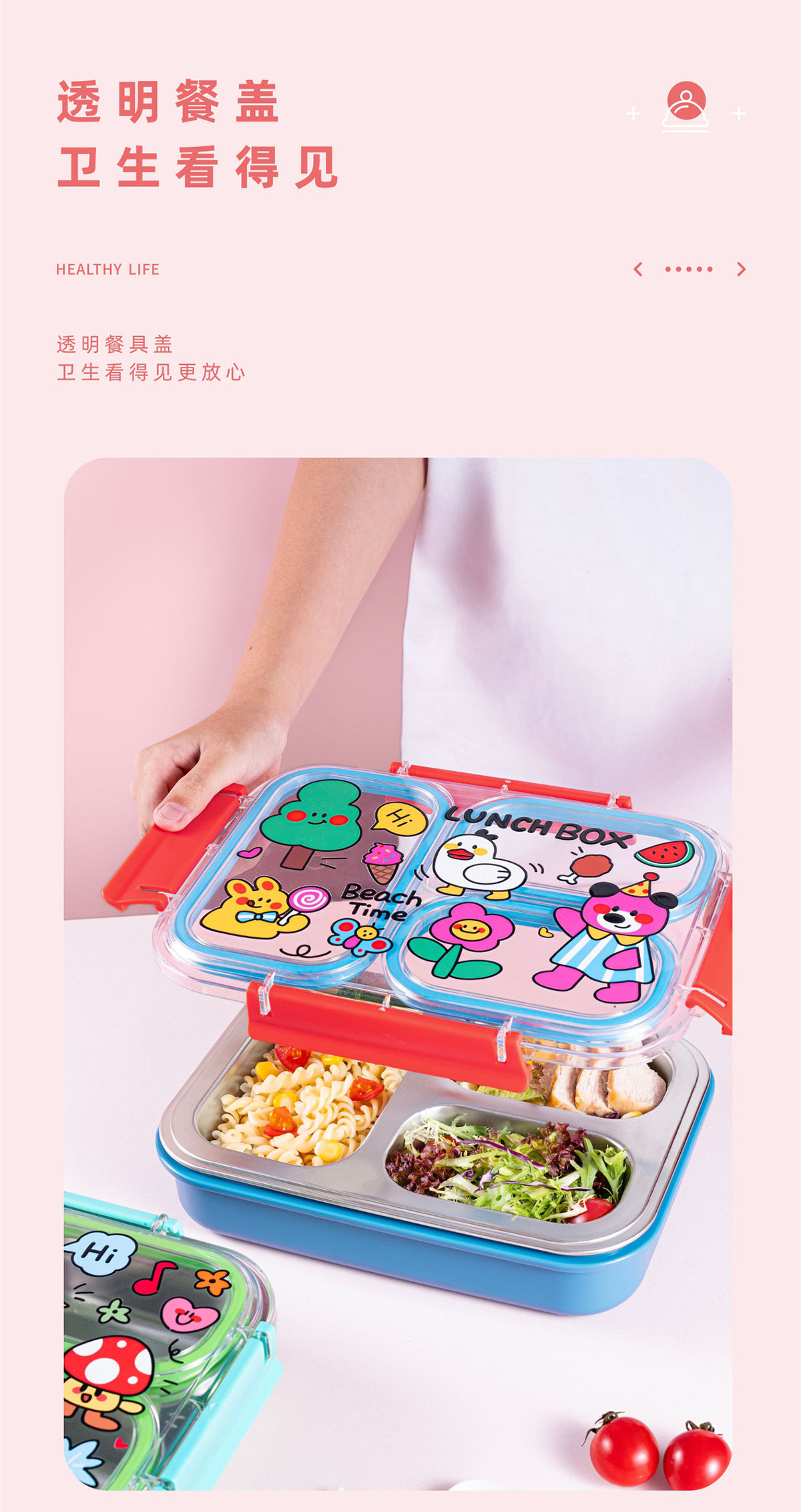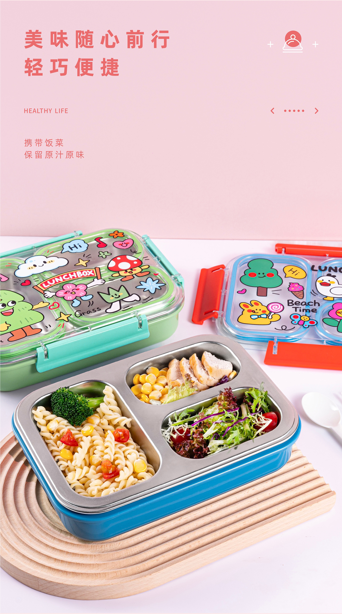 趣繪不銹鋼分格餐盒(帶餐具)